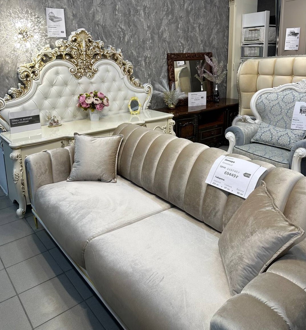 Мебель в классическом и современном стиле:спальни, гостиные, мягкая мебель, кухонные гарнитуры, в наличии и на складе.